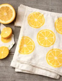 3. Stamp them onto a tea towel to create patterns.